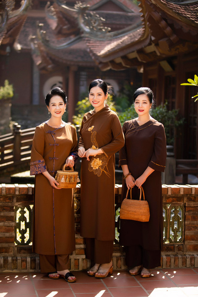 Bên cạnh áo lam, người ta còn thường đi lễ với nhiều mẫu áo dài truyền thống.