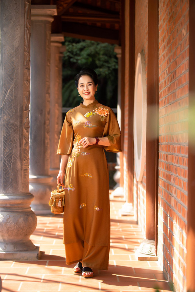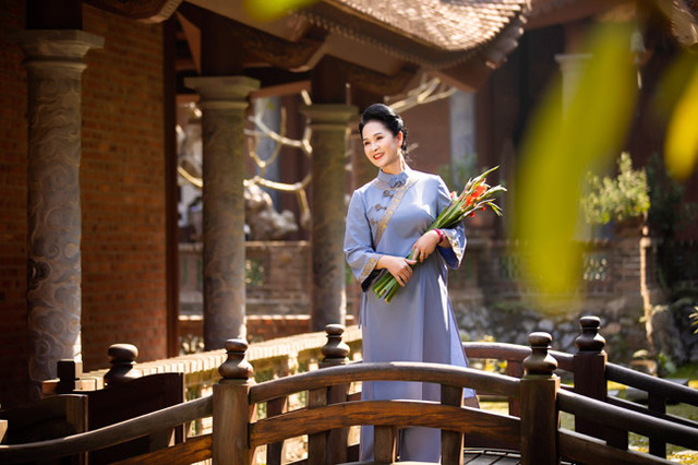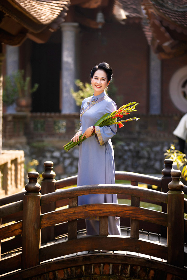 Nghệ sĩ Lan Hương tươi tắn trong tà áo dài duyên dáng.