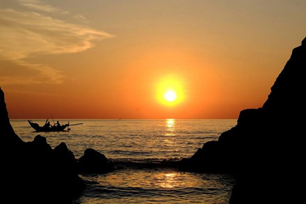 Vào những sớm bình minh, khi ánh nắng vừa ló rạng rực hồng ở chân trời, phản chiếu lấp lánh dưới mặt biển mênh mông, là khi những vũ điệu sóng huyền ảo của bãi Đá nhảy tuyệt đẹp nhảy bắt đầu.