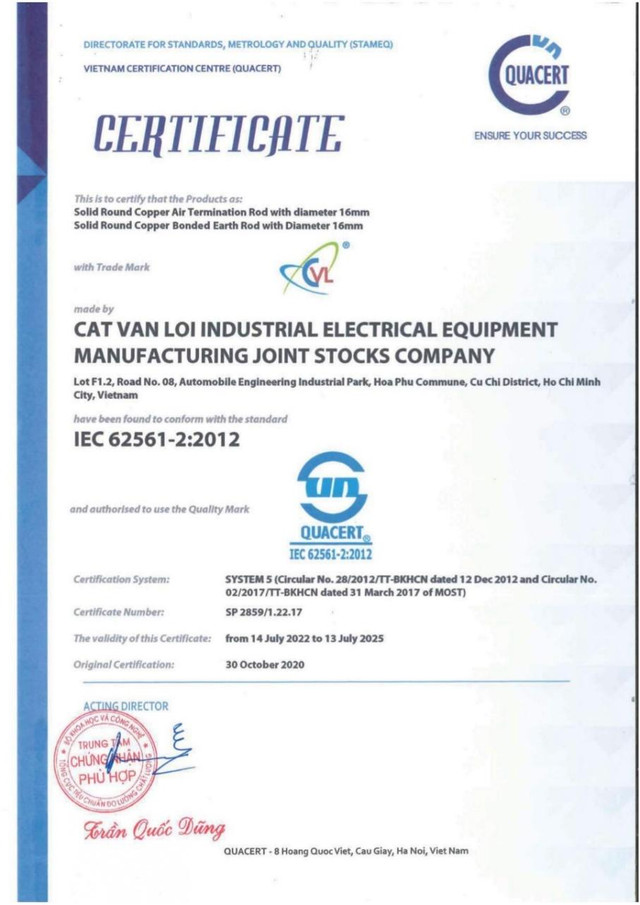 Tại thị trường Việt Nam, Cát Vạn Lợi được xem là doanh nghiệp uy tín chuyên sản xuất và cung cấp các sản phẩm cơ điện - hệ thống chống sét tiếp địa (Lightning Protection & Grounding System) đạt chuẩn cho các nhà thầu dùng để thi công lắp đặt cho các công trình. Đặc biệt có thể kể đến sản phẩm hỗ trợ thi công trong hệ thống nối đất – Hộp kiểm tra tiếp địa chống sét (Grounding Test Box) đạt chuẩn IEC 62561/TCVN 9835:2012. Hộp kiểm tra tiếp địa chống sét do Cát Vạn Lợi sản xuất gồm 3 loại chính, được chọn để thay thế hàng nhập khẩu tại các công trình, giúp mang lại hiệu quả chống thấm cao.
