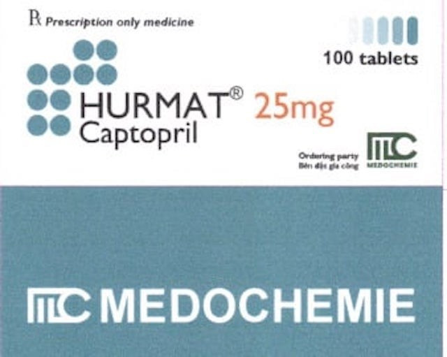 Được biết, Hurmat 25mg với thành phần chính là Captopril, được sử dụng để điều trị cao huyết áp, suy tim sung huyết, nhồi máu cơ tim (trong một số trường hợp cụ thể) và bệnh thận ở bệnh nhân đái tháo đường type 1. Thuốc hoạt động bằng cách ức chế men chuyển, giúp làm giãn mạch máu và giảm huyết áp.
