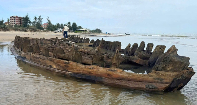 Sau bão số 13, lớp cát dày ven biển bị cuốn trôi khiến con tàu gỗ nghi là tàu cổ dài hàng chục mét tại bãi biển Tân Thành, phường Hội An Tây (TP Đà Nẵng) hiện rõ hình dáng. Con tàu nằm song song với bờ, nhiều bộ phận vẫn còn nguyên kết cấu, thu hút sự chú ý của người dân và du khách. Theo đánh giá ban đầu, con tàu có niên đại khoảng thế kỷ 14-16, cấu trúc thể hiện sự giao thoa giữa phong cách đóng tàu Đông Nam Á và Đông Á, được xem là một trong số ít tàu cổ còn khá nguyên vẹn từng phát lộ tại Việt Nam.