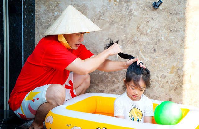 Trong một phân cảnh khác, bà xã Quỳnh Anh tỏ ra không hài lòng khi biết các con sau cả ngày dài chưa được bố cho đi tắm. Tuy nhiên, “Lee Min Ho Đồng Nai” đã cho thấy khả năng xử lý khủng hoảng nhanh chóng và “lầy lội” khi nói với bà xã rằng: “Anh thấy con bình thường mà đâu có hôi đâu. Anh nghĩ nên cho con chơi cho đã một ngày rồi mình đi tắm luôn, chả có vấn đề gì cả”. Trong khi đó, Quỳnh Anh vẫn không đồng ý và yêu cầu ông xã đi tắm cho các con ngay lập tức.