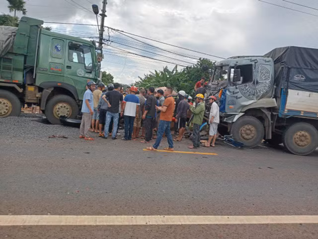 Tại hiện trường, ô tô chở thành viên HAGL bị bẹp rúm, xe ben và xe tải bị hư hỏng nhẹ.