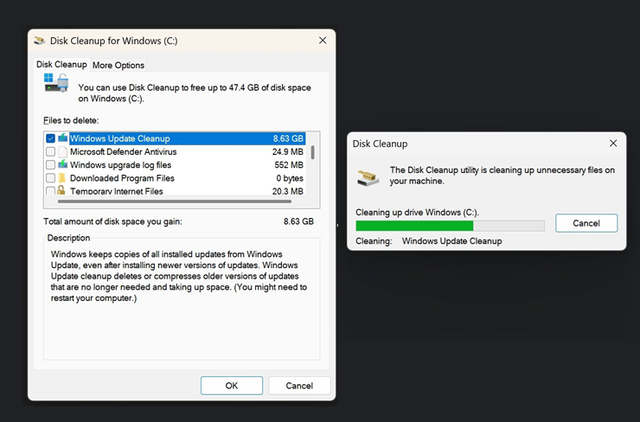 Theo báo cáo, bản cập nhật 24H2 đã tạo ra một bộ nhớ cache có dung lượng lên tới 8.63GB, chiếm dụng không gian ổ cứng một cách đáng kể. Người dùng đã thử nhiều cách để xóa nó đi gồm sử dụng Disk Cleanup, Storage Sense, thậm chí xóa thủ công các thư mục hệ thống, nhưng đều không thành công.