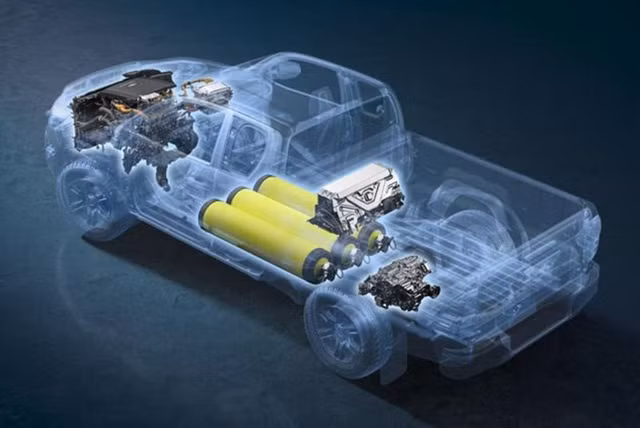 Cụ thể, hệ thống FCEV của mẫu bán tải này ba gồm ba bình hydro áp suất cao được tích hợp trong khung gầm xe, với tổng dung tích là 7.8 lít. Phía dưới nắp capo là một bộ pin nhiên liệu polymer với 330 cell, sản sinh năng lượng và lưu trữ trong pin lithium-ion đặt ở phía sau thùng xe. Đi kèm với đó là động cơ điện gắn phía sau có công suất 180 mã lực và mô-men xoắn 300Nm.