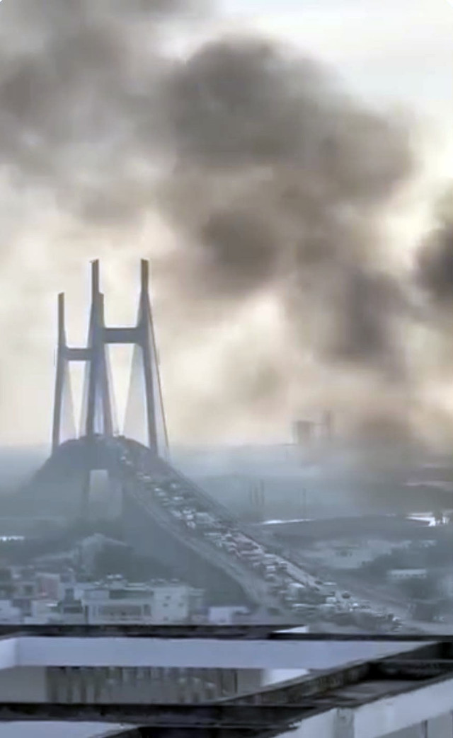 Ảnh hưởng từ vụ cháy khiến giao thông qua khu vực bị ùn tắc kinh hoàng, hàng nghìn phương tiện bị "chôn chân".