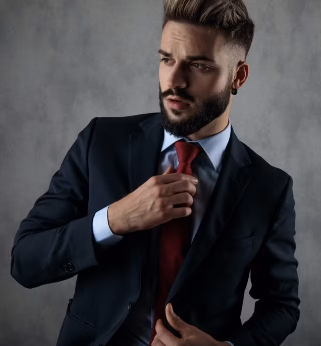 Bộ vest và cà vạt, biểu tượng lâu dài của sự thanh lịch nam tính, thể hiện sự pha trộn giữa truyền thống và sự thể hiện bản thân trong khuôn khổ phong cách cổ điển.