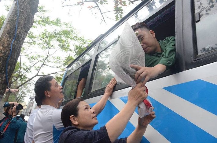 Mẹ của tân binh Phạm Trung Hiếu - chị Nguyễn Kim Lan (Đống Đa) nghẹn ngào khi phải tạm thời rời xa con. "Cháu là con một trong gia đình, nay phải xa nhà để thực hiện nhiệm vụ tôi rất vui, nhưng sợ nhớ con nên mới khóc. Tôi hy vọng, vào quân ngũ con cố gắng giữ gìn sức khỏe, học tập, rèn luyện để hoàn thành xứ mệnh thiêng liêng này", - chị Lan chia sẻ.