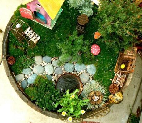 Với những cây hoa đá, rêu cùng vật trang trí bé xíu, bạn có thể tự làm vườn hoa mini trong một cái chậu tuyệt đẹp để trang trí cho ngôi nhà.